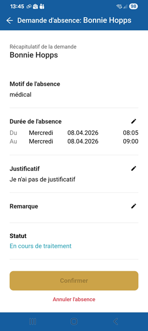 Tant que l’absence se trouve dans l’onglet « En traitement »,
