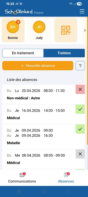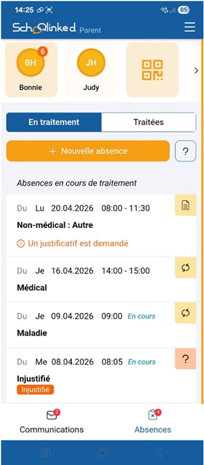Dès que l’absence a été traitée par l’école et se trouve dans l’onglet