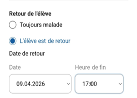 L’absence maladie continue de jour en jour, tant que vous n’y mettez pas fin en sélectionnant l’élève est de retour.