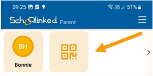 Vous pouvez ajouter un autre enfant en cliquant sur le pictogramme mosaïque et en scannant le QR-code ou en entrant le code que vous avez reçu de l'établissement scolaire.